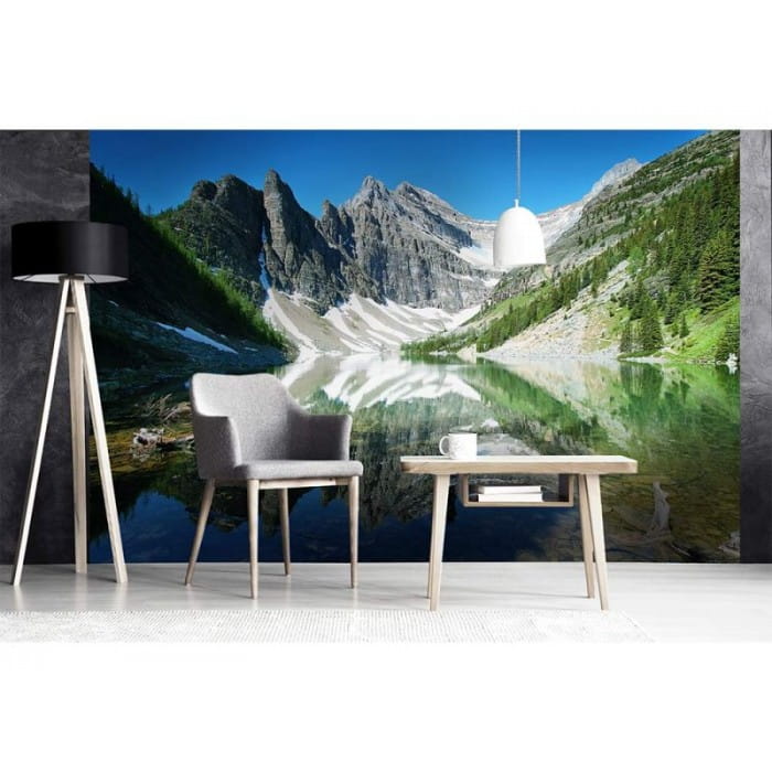 Dla wszystkich, którzy pragną cieszyć się każdego dnia cieszyć się w przestrzeni mieszkalnej naturalnym krajobrazem, naszą propozycją na dekorację ściany jest fototapeta "Lake Agnes". Wielkoformatowy druk przedstawiający krajobraz jeziora Agnes u podnóża Gór Skalistych pomoże zaaranżować klimatyczny salon, czy też sypialnię. Imponujący widok na krystaliczną taflę wody, która w słoneczny, bezchmurny dzień odbija wysokie szczyty górskie i zieleń drzew zapewni świetny efekt wizualny na ścianie. Fototapeta idealnie nadaje się do małego pokoju, który z jej udziałem będzie wydawał się optycznie większy. Flizelinowe podłoże fototapety zamaskuje drobne niedoskonałości ściany.