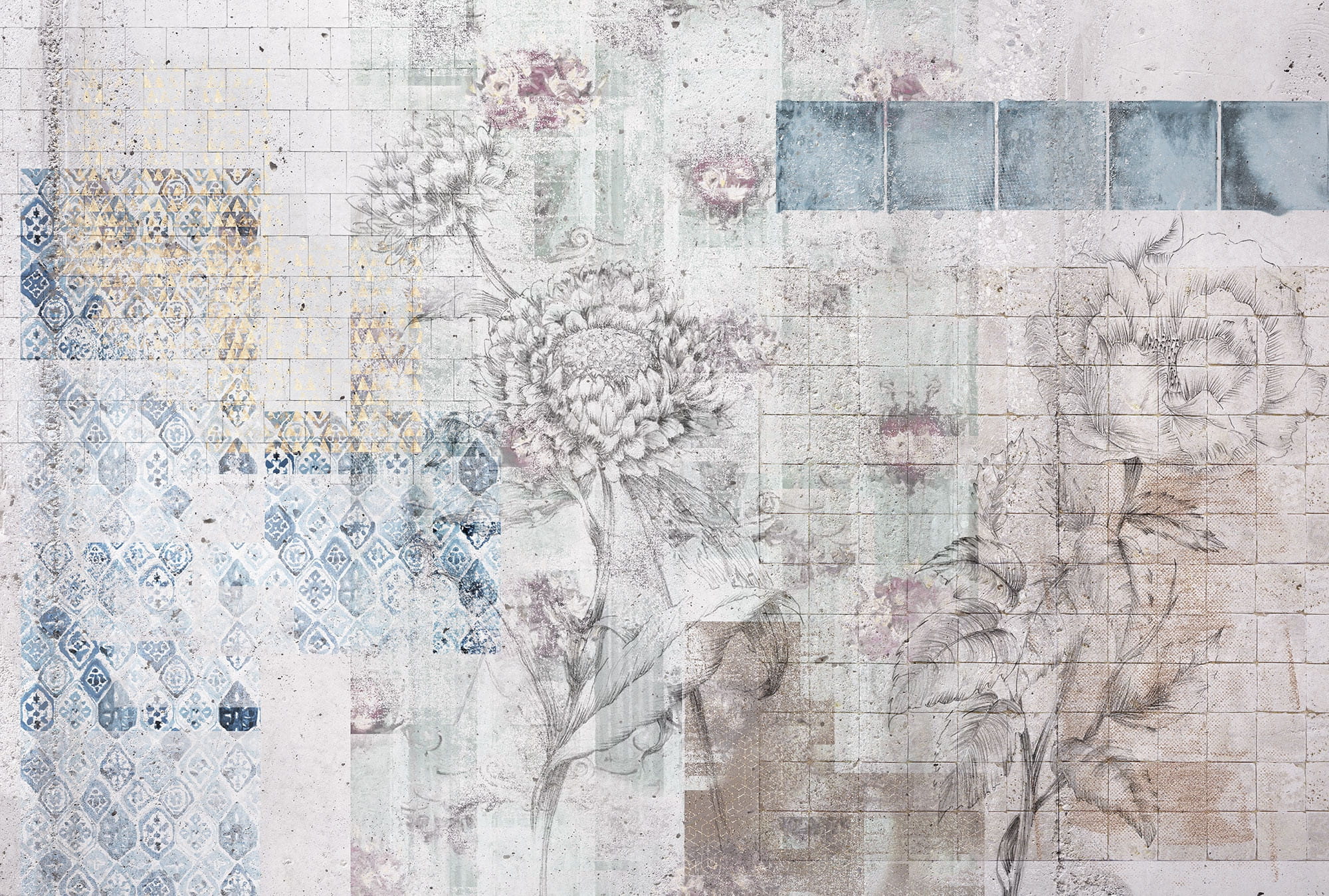Stylowa fototapeta w stylu retro z kolażem kwiatów i wzorów wprowadzi nostalgiczny klimat do Twojego domu