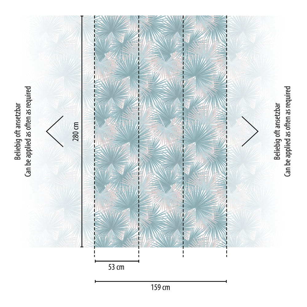 Jedna rolka o szerokości 53 cm i długości 8,8 m tworzy mural o wymiarach 159 x 280 cm.