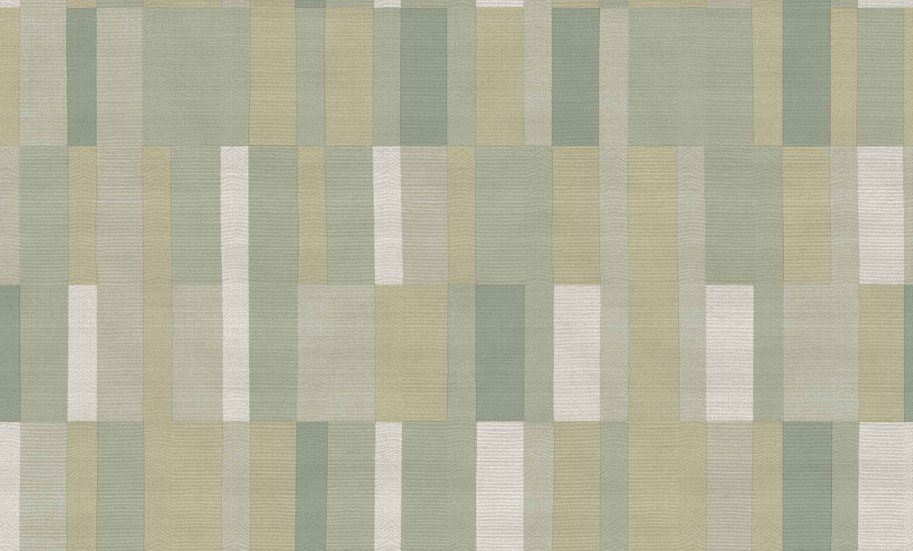 Ekskluzywna tapeta ścienna z kolekcji "Terra", włoskiego producenta Cristiana Masi. Tapeta o strukturze tkaniny o dwóch różnych, prążkowanych splotach. Prosty, geometryczny deseń tworzą prostokątne płytki w delikatnych i chłodnych odcieniach zieleni oraz w beżu wpadającym w zieleń i szarawej bieli. Neutralna i spokojna kolorystyka tapety nadaje całości przytulnego i naturalnego charakteru. Beżowe elementy połyskują subtelnie złotym pyłkiem brokatu, co jest widoczne szczególnie wtedy, kiedy tapeta odbija światło. Tapeta doskonale sprawdzi się jako dekoracja jednej ściany, tworząc modne zestawienie z pasującymi do niej tapetami, które prezentujemy poniżej. Pięknie udekoruje nowoczesny salon, jadalnię, sypialnię, przedpokój czy też młodzieżowe wnętrze. Tapeta winylowa na podłożu flizelinowym, odporna na szorowanie, dzięki czemu utrzymanie jej w czystości nie będzie stanowiło problemu.