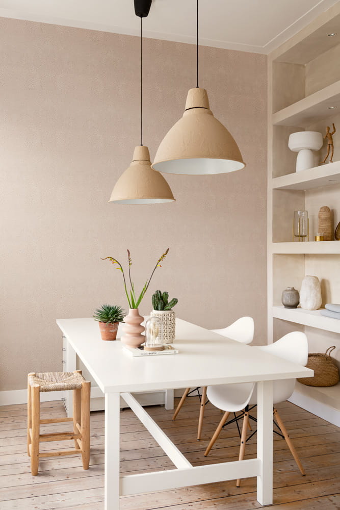 Struktura tapety jest twarda i lekko chropowata z wyczuwalnym tłoczeniem.